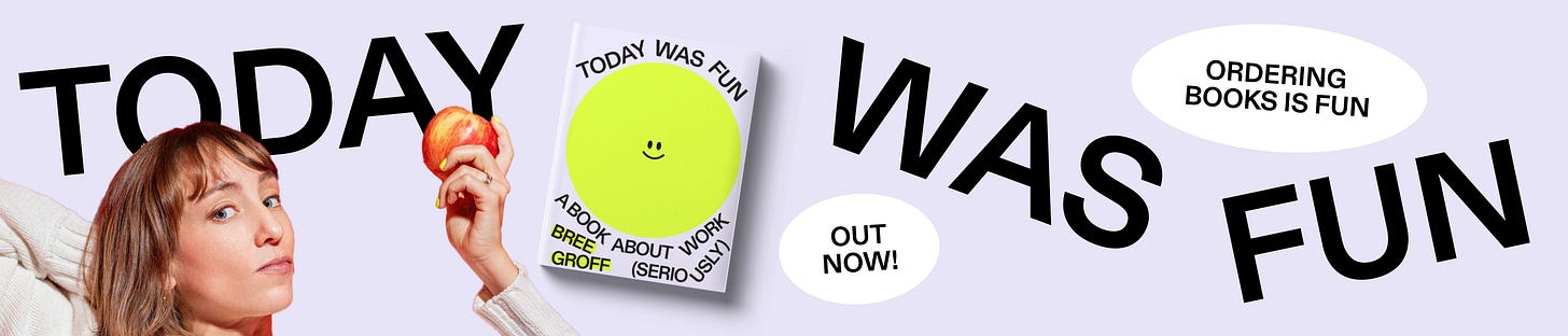 Hi! My name is Bree, and I write about how to have better days at work and in life. Subscribe for posts on everything from 20 short rules for better days at work to Grandpa Mornings. And order my new book, Today Was Fun: A Book About Work (Seriously)!